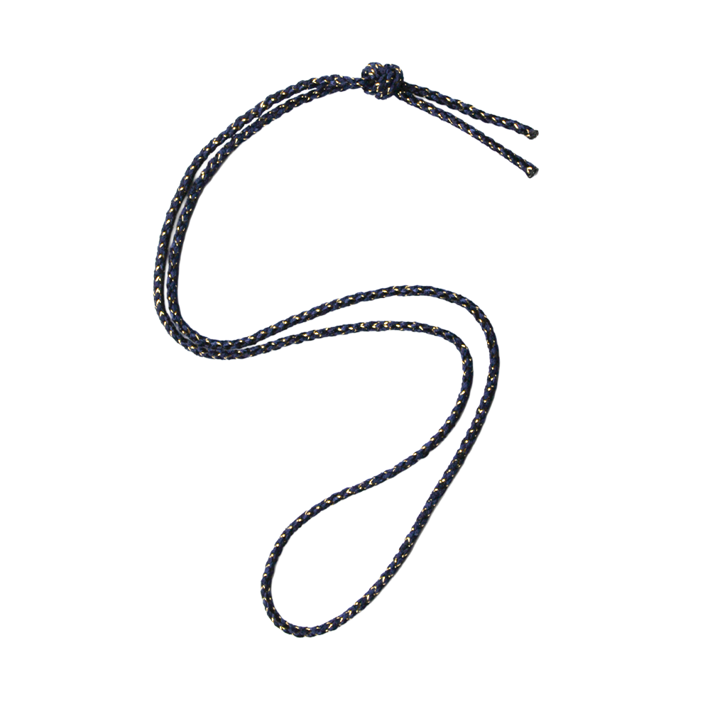 Geef je look een speelse én elegante touch met dit donkerblauwe koordje, subtiel verweven met goudkleurig draad. De combinatie van diepblauw en goud zorgt voor een chique, maar toch speelse uitstraling. Het koordje heeft geen slotje, waardoor je zelf de lengte kunt bepalen en het precies kunt dragen zoals jij wilt, strak, lang of gelaagd met andere kettingen.