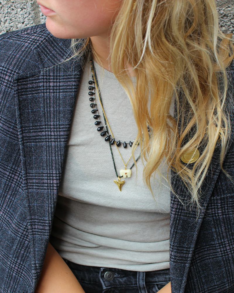 Voeg een warme gloed toe aan je look met deze verfijnde ketting, handgemaakt met natuurlijke zwarte onyx edelstenen. De subtiele gouden accenten en fijne kralen zorgen voor een elegante balans tussen verfijning en levendigheid. Perfect te combineren met zowel een casual outfit als een stijlvolle avondlook.