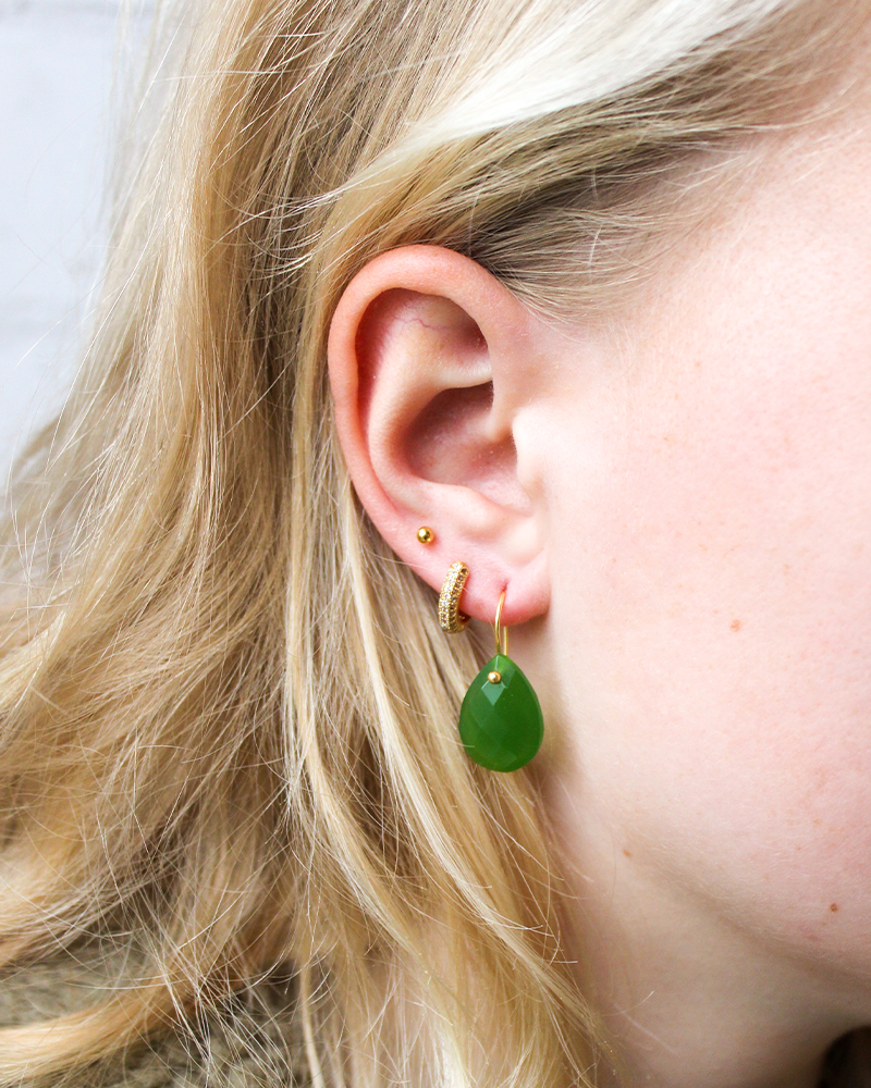 Een van onze favorieten: deze lichtgewicht 18-karaats vergulde oorbellen met natuurlijke edelstenen stralen eenvoud en verfijning uit. Het tijdloze druppelvormige design zorgt voor een subtiele, maar opvallende touch. Perfect voor dagelijks gebruik of om je look net dat beetje extra te geven. Elegant, moeiteloos en altijd in stijl! De oorbellen zijn met de hand gemaakt in India. Geen massaproductie, maar echt vakmanschap.