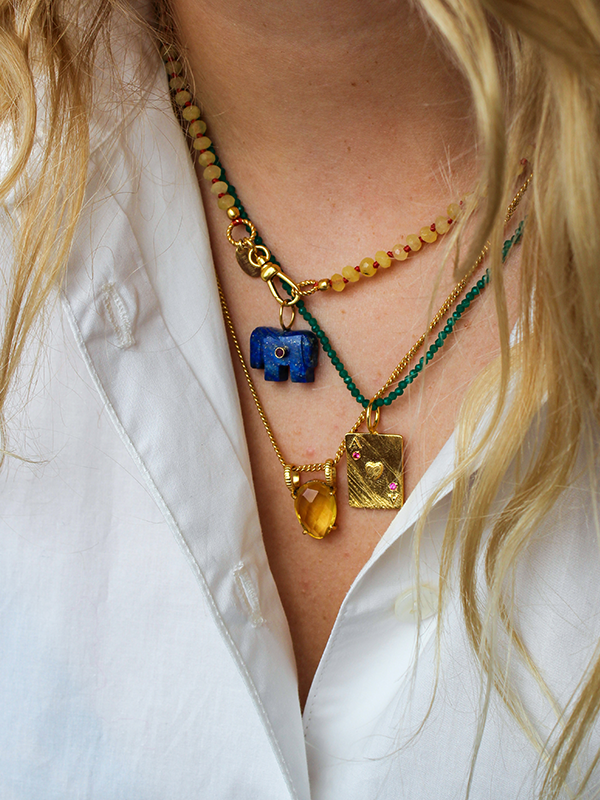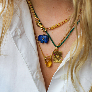 Onze bestseller, nu met de hand geknoopt: een prachtige gele jade ketting met een verfijnd, verguld 18-karaats slot. Een speelse en kleurrijke toevoeging aan je outfit. Voeg je favoriete bedels toe of combineer met een van onze gouden of stenen kettingen voor een unieke look. Verkrijgbaar in verschillende edelsteen kleuren.