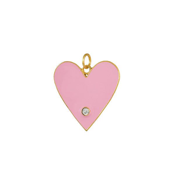 - Groot licht roze emaille hart met zirkonia steentje