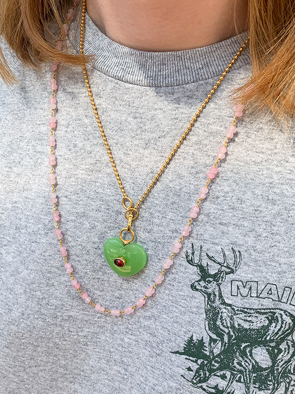 Verwen jezelf of je geliefde met dit prachtige groene vessoniet hart en combineer hem met je kettingen of andere bedels. Een echte blikvanger!