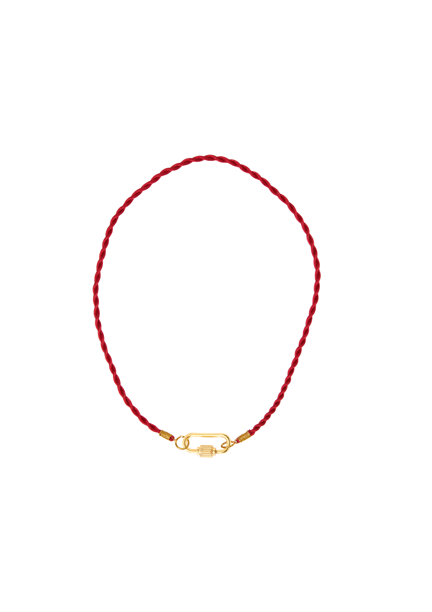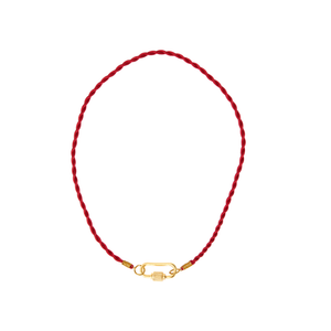 Hand knotted satin necklace with an 18k gold plated oval twist lock to add your favorite charms. Mix and match with one or more of our other necklaces and charms for a unique look.