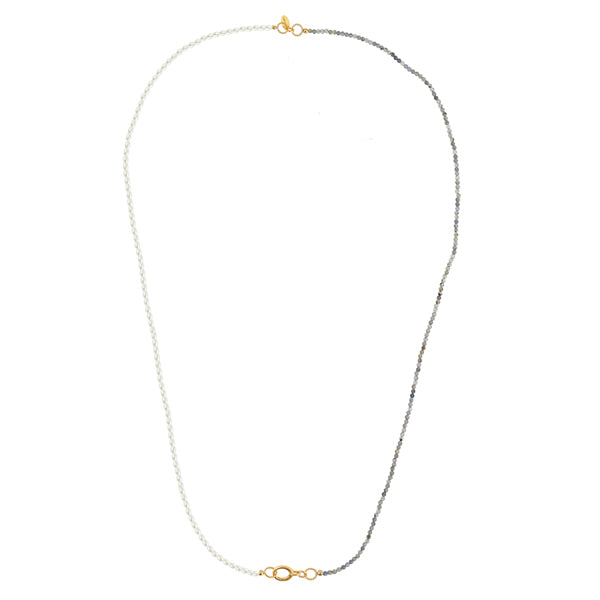 Add a touch of sophistication to your jewelry collection with this unique necklace, where delicate pearls and fine gemstones come together in a perfectly balanced design. Thanks to its adjustable length, you can wear it in two ways: short for a chic and refined look, or longer for an elegant touch that suits any occasion. A timeless piece of jewelry with a modern twist!