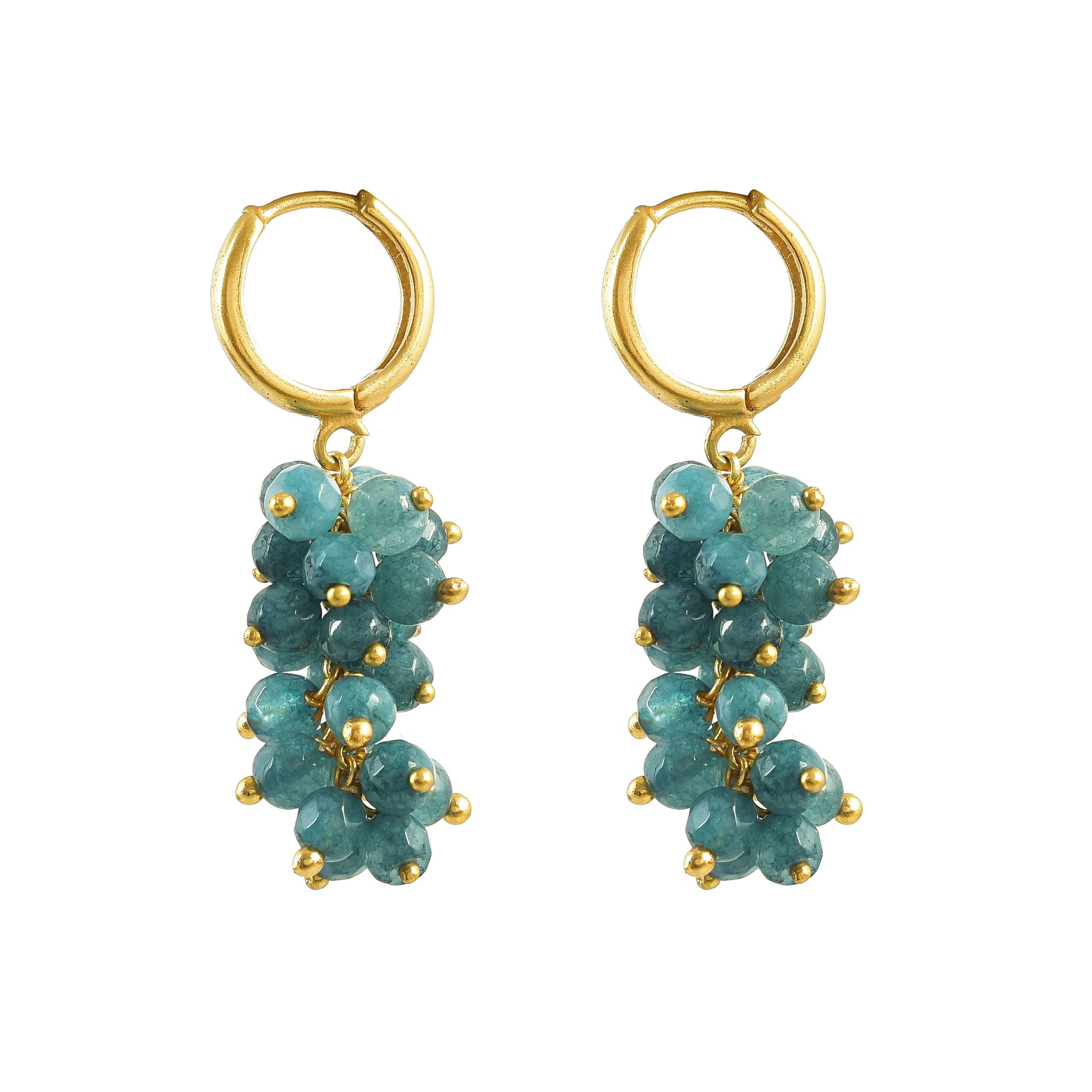 Go stylish with these cluster earrings from Aqua gemstones. Add some sparkle to your outfit with these beautiful earrings. You can wear them solo or mix and match with your other earrings for a playful twist.