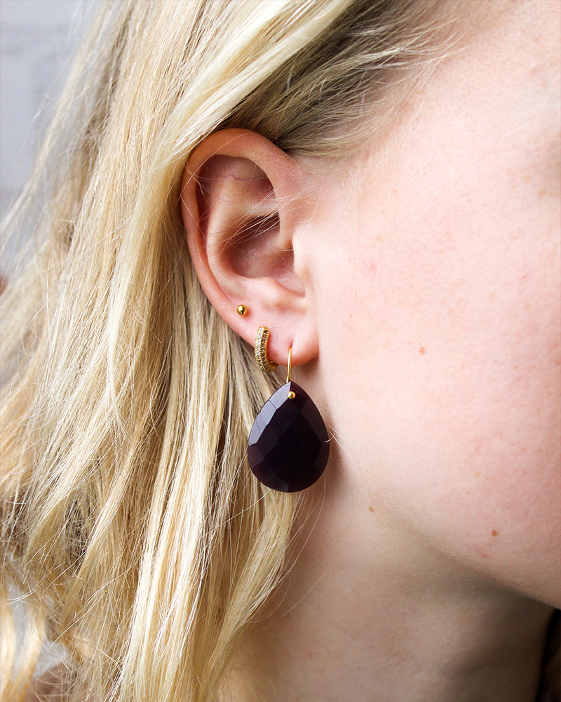 These lightweight 18-carat gold-plated earrings with natural gemstones radiate simplicity and sophistication. The timeless drop-shaped design adds a subtle yet striking touch. Perfect for everyday wear or to give your look that extra bit of flair. Elegant, effortless, and always in style!