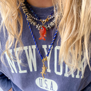 I AM JAI Jewellery is designed in Amsterdam (AM) and produced in the jewellery capital of India: Jaipur (JAI). Our jewellery is characterised by the use of 18-carat gold plated on silver or brass, combined with semi-precious stones.