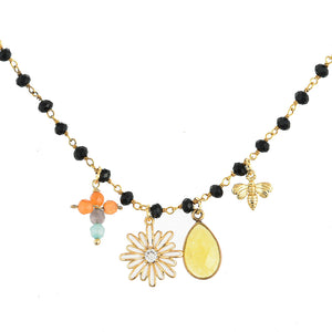 A handmade jade necklace with playful charms that together form a unique piece. Carefully assembled. Thanks to the variation in color, shape, and charms, every necklace is different. There is only one of each.