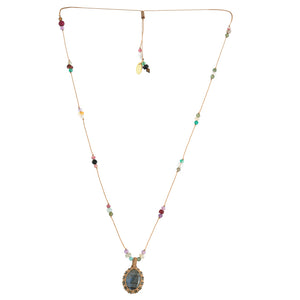 Cord Necklace with Gemstones Green Rutile Quartz