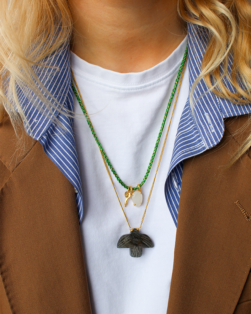 I AM JAI Jewellery is designed in Amsterdam (AM) and produced in the jewellery capital of India: Jaipur (JAI). Our jewellery is characterised by the use of 18-carat gold plated on silver or brass, combined with semi-precious stones.