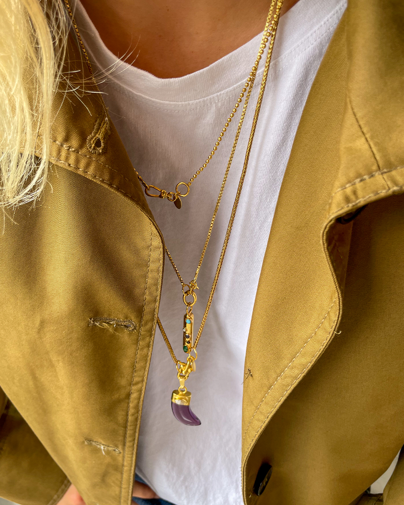 Geef een persoonlijk cadeau met onze Initial Bedel I! Deze prachtige bedel, bezet met edelstenen zoals Turquoise, Amethist, Groene Jade, Aventurijn en Parel, is perfect om een speciale letter te dragen – of het nu die van jezelf, je moeder, kind of iemand anders is die je dierbaar is. Combineer de bedel met onze elegante gouden kettingen om een compleet en stijlvol cadeau te creëren voor elke gelegenheid!