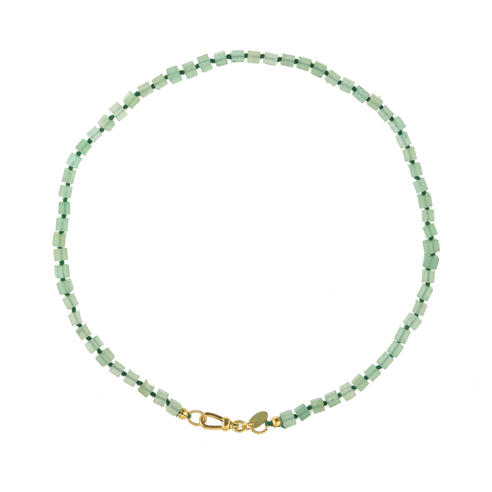 Handgeknoopte Blokjes Ketting Groene Jade